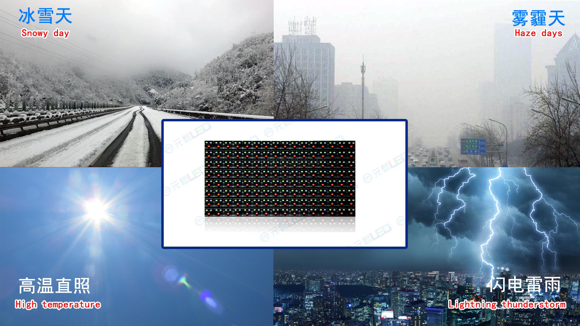 ? ? ?屏體可在腐蝕和高溫嚴(yán)酷環(huán)境下使用數(shù)年之久,在公路上,最高使用溫度可達(dá)70度以上,LED燈使用的扛紫外線環(huán)氧樹脂封裝,這種封裝可抵擋太陽(yáng)光直射,另外屏體具體防水、防腐蝕、防雷電、防靜電、防風(fēng)、防曬、防熱、防凍等功能。